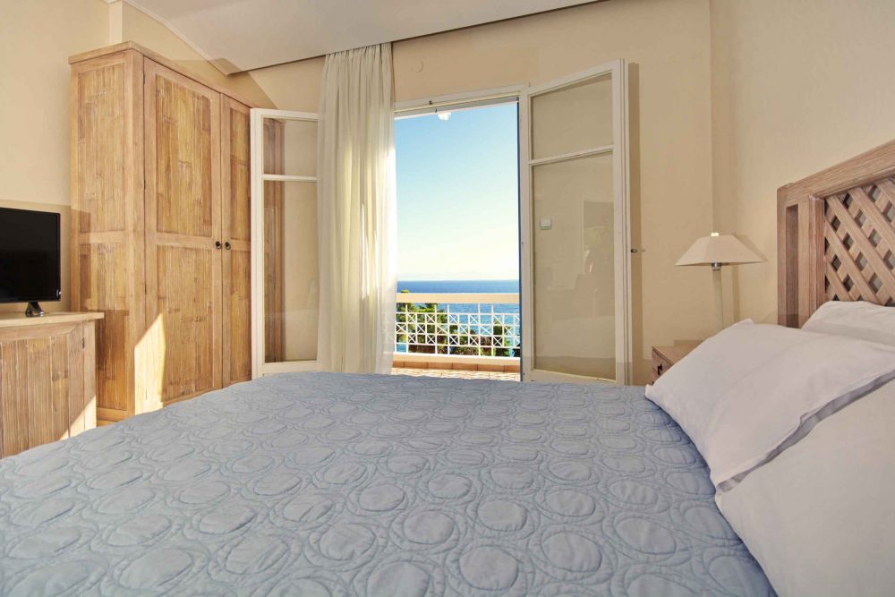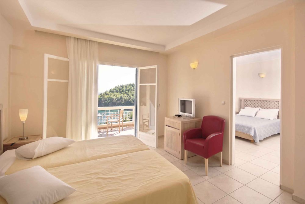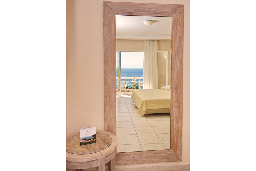 It is the perfect choice for a family for a relaxing experience. Floodlighted by the sun of the Aegean Sea, this modern room provide you two bedrooms with an internal door and a terrace.